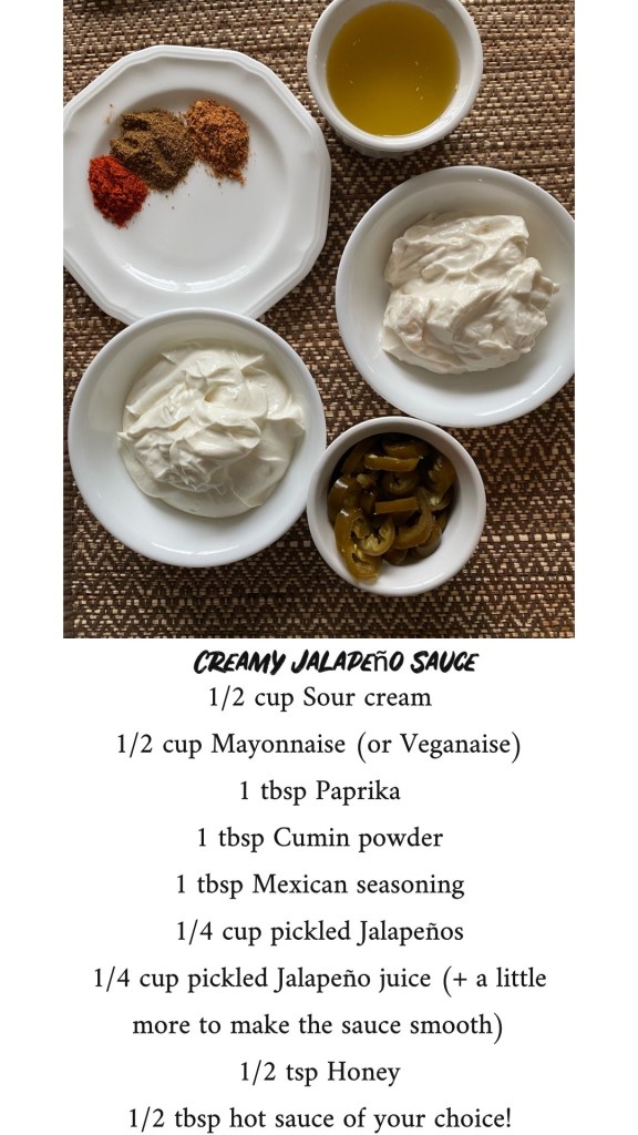 You can always add a little bit more of the Jalapeño juice in this sauce to make it spicier/ and feel free to change the levels of Hot sauce. Use salt as needed (all these other ingredients have salt in them already so you might not need it!)